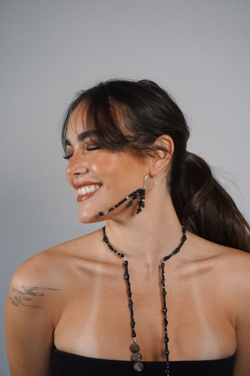 Clustered top with cascading beaded strands