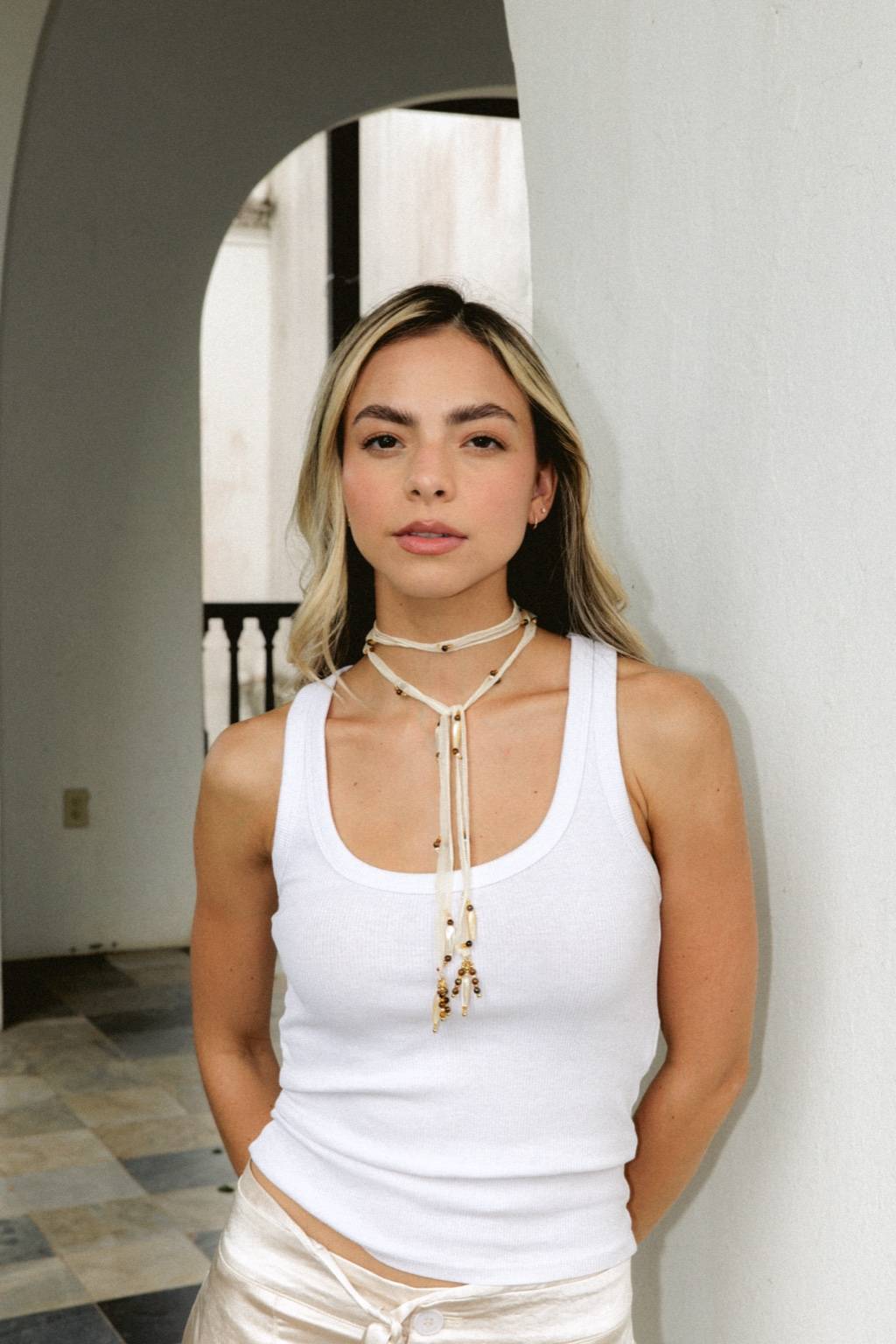 Can be styled multiple ways — wrap it as a choker, tie it long, or layer it