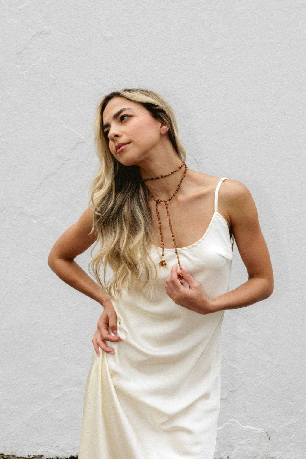 Made entirely of earth, amber and golden-tone beads for a warm, light-catching finish