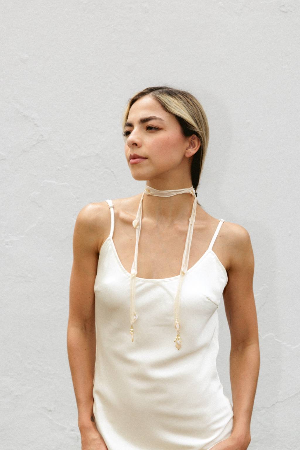 Can be styled multiple ways — wrap it as a choker, tie it long, or layer it